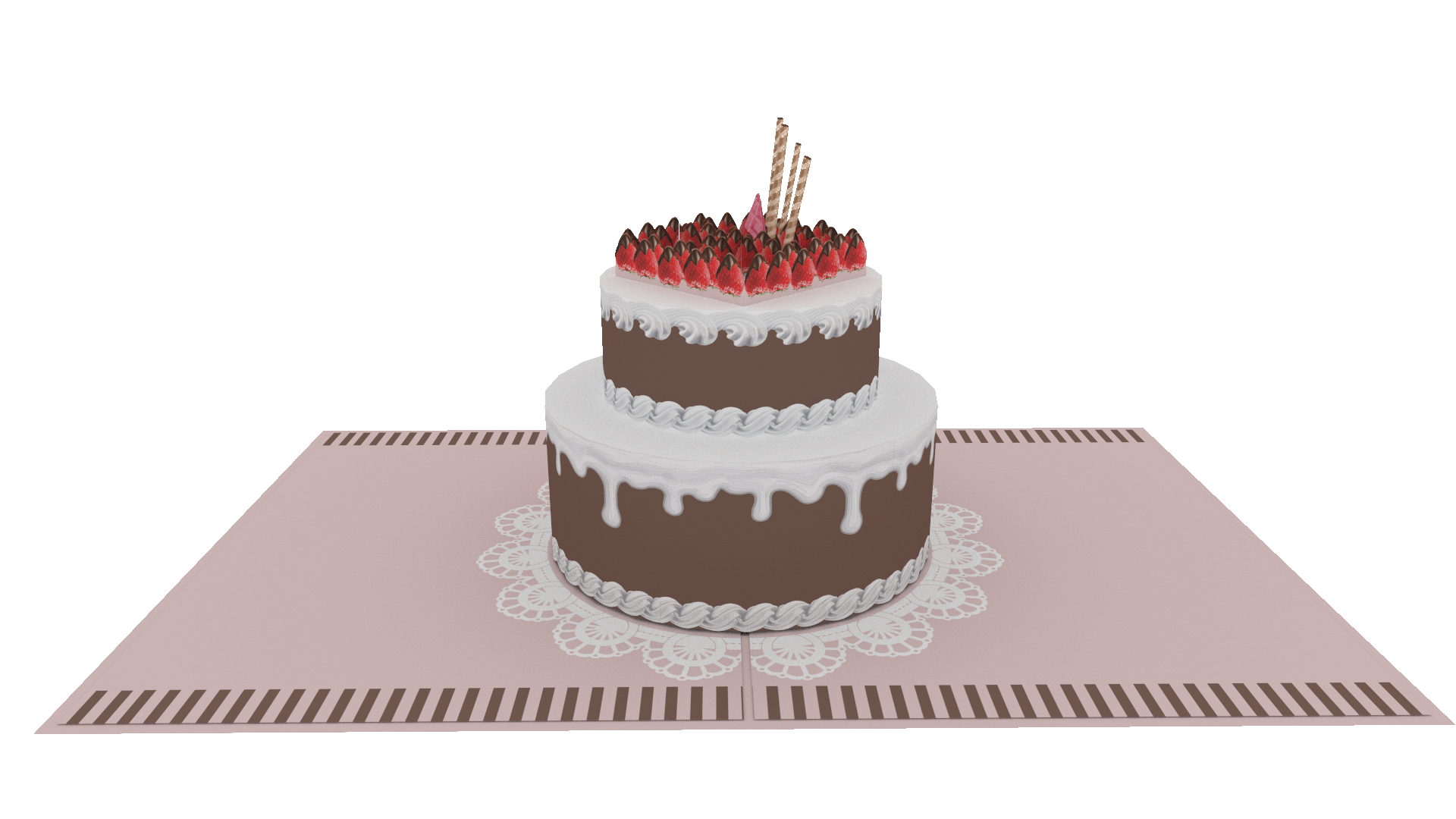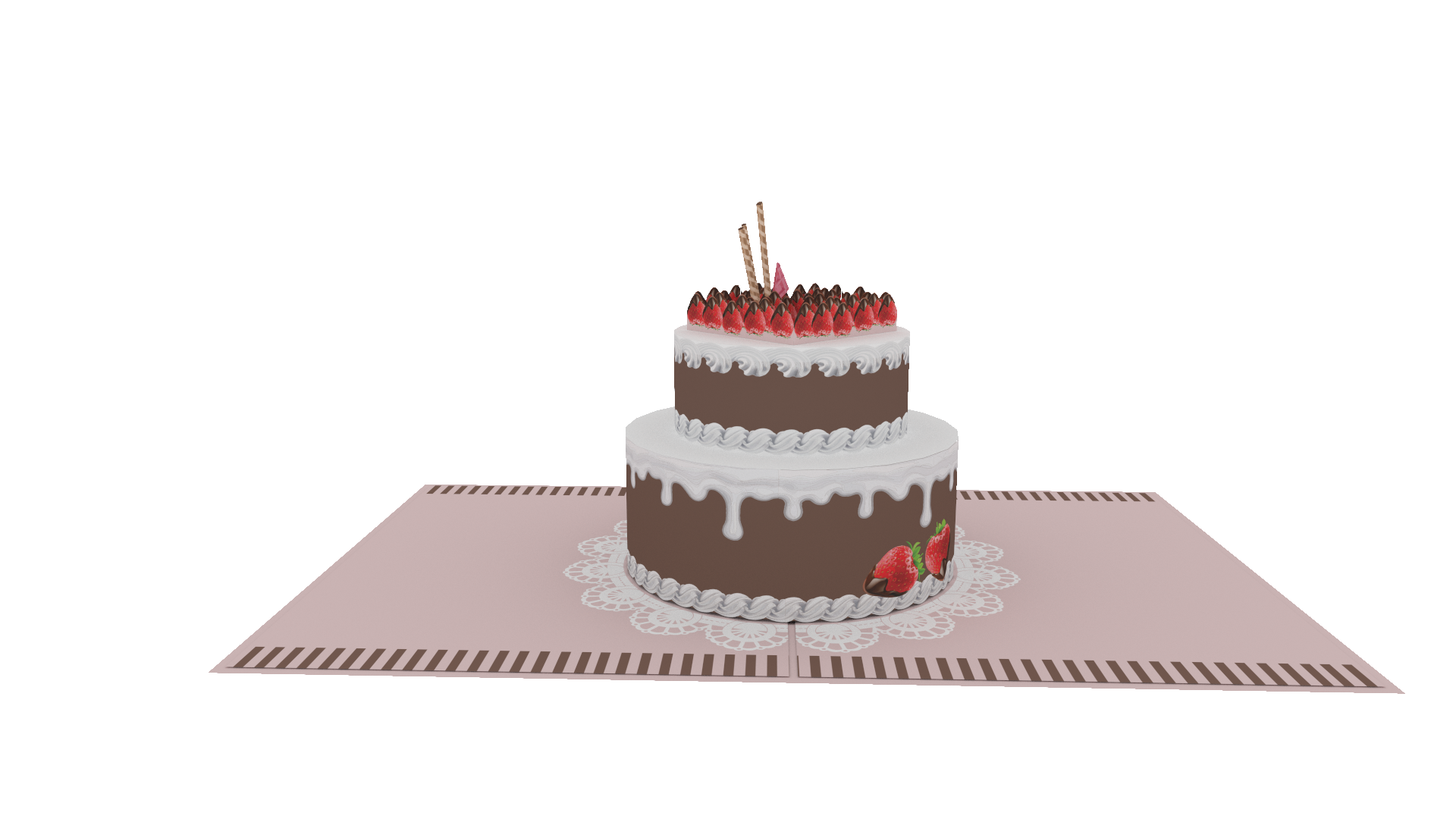 Description: The 5.5” x 6.7’’ 3D pop-up Chocolate Strawberry Cake card is a beautiful and unique way to celebrate birthdays. This card features an intricate pop-up centerpiece that showcases a delicious chocolate strawberry cake, expertly crafted with vibrant colors and intricate details.