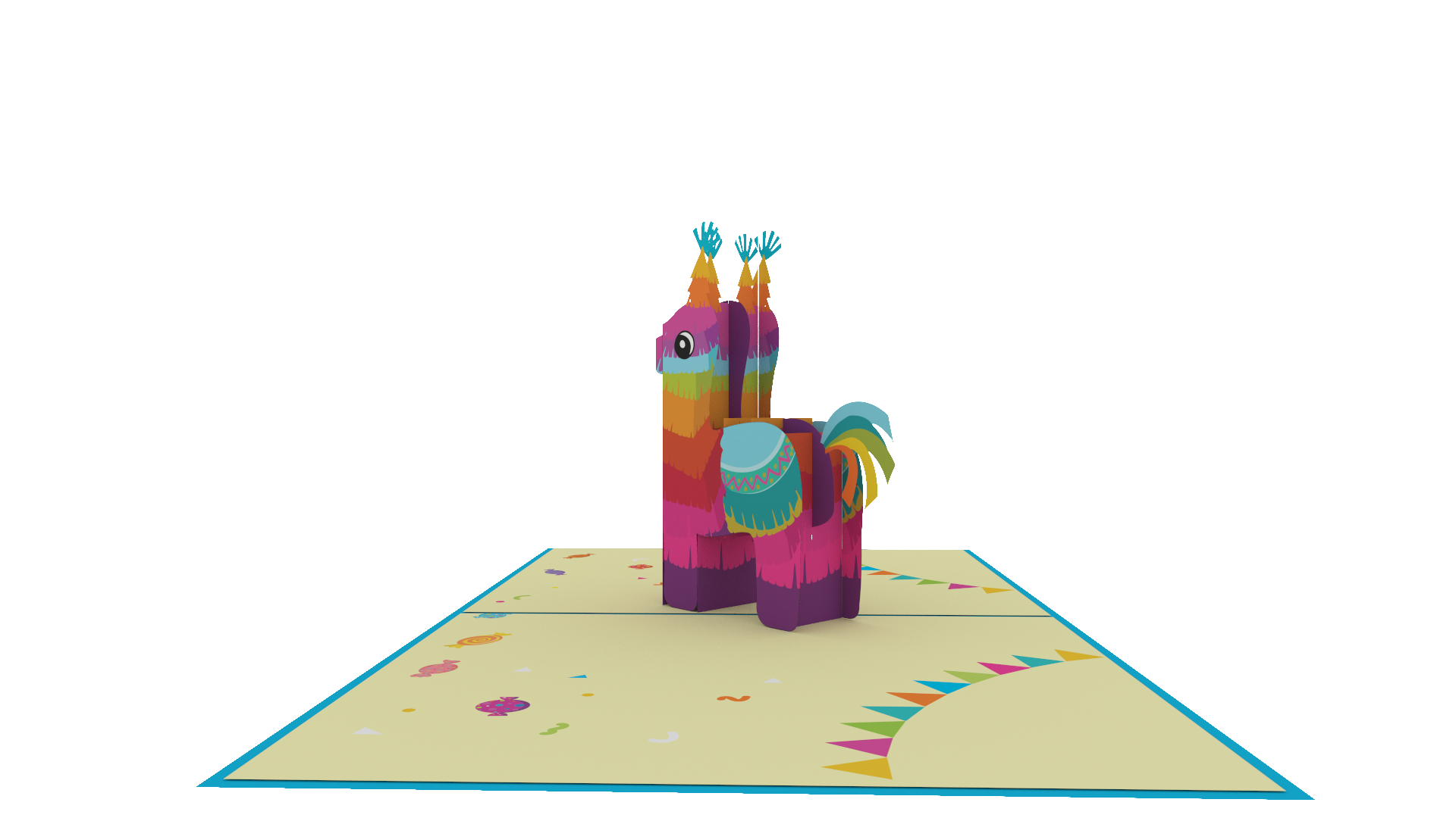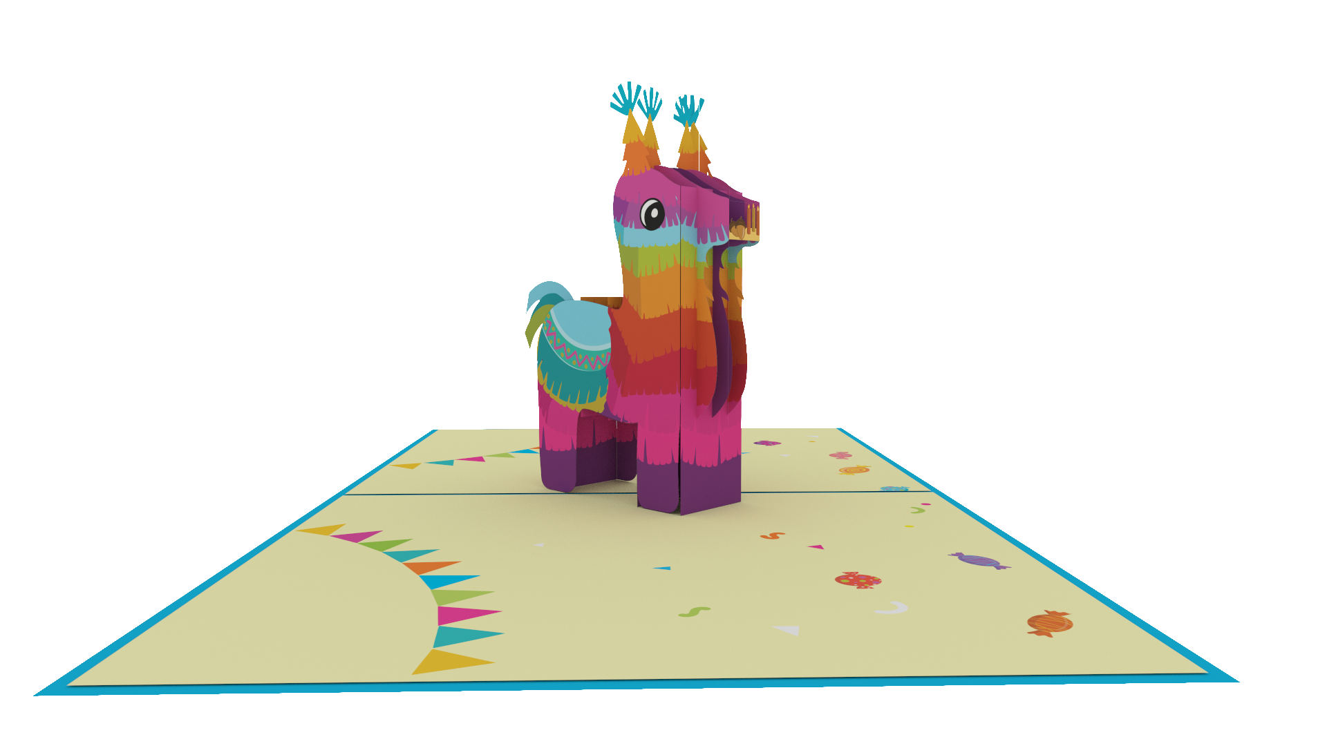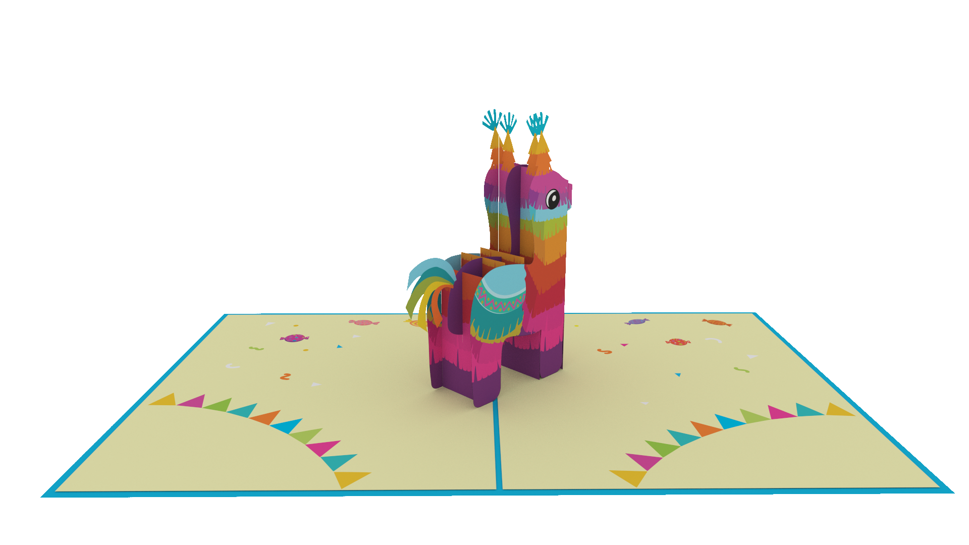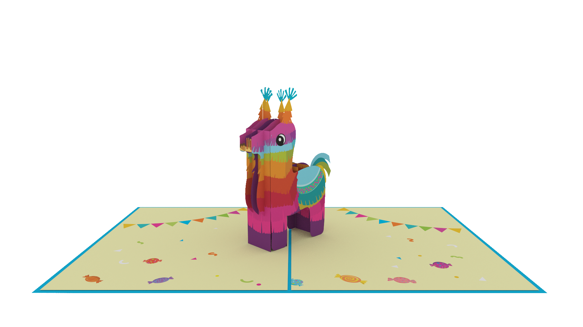 The pinata is a symbol of celebration, and this card embodies that spirit with its vibrant and colorful design. The intricate pop-up centerpiece is a work of art, featuring detailed and intricate pinata elements that will capture the imagination of the recipient.