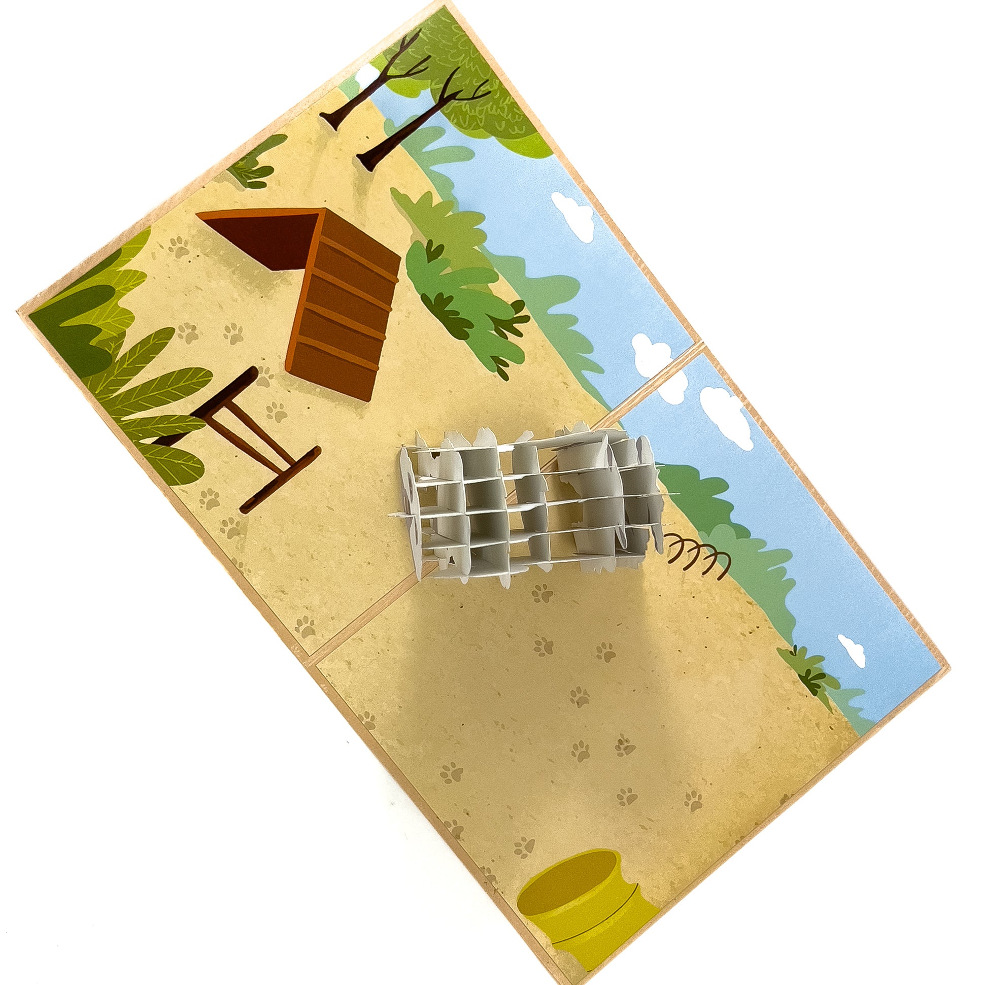 Description: The 3D pop-up greeting card is made of high-quality paper and has a dimension of 5.5 inches by 6.7 inches when folded. When opened, it reveals a beautiful 3D pop-up design of a dog standing in a dog park, surrounded by trees. The pop-up is intricately designed with great attention to detail, making it a stunning display piece. Mail to a friend, a co-worker, or a family member who loves dogs to brighten their day.